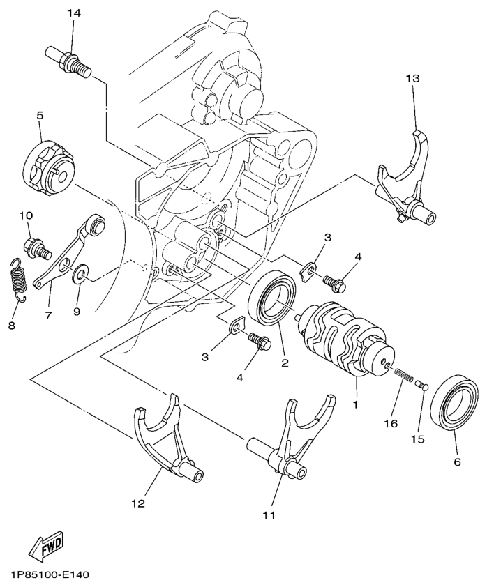 Vaihderumpu ja haarukat, YZ250 2009, YZ250, 250 cc Offroad, Yamaha -varaosa luettelot
