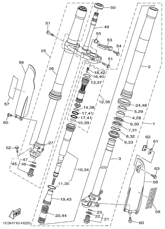 Etuhaarukka, YZ250 2010, YZ250, 250 cc Offroad, Yamaha -varaosa luettelot