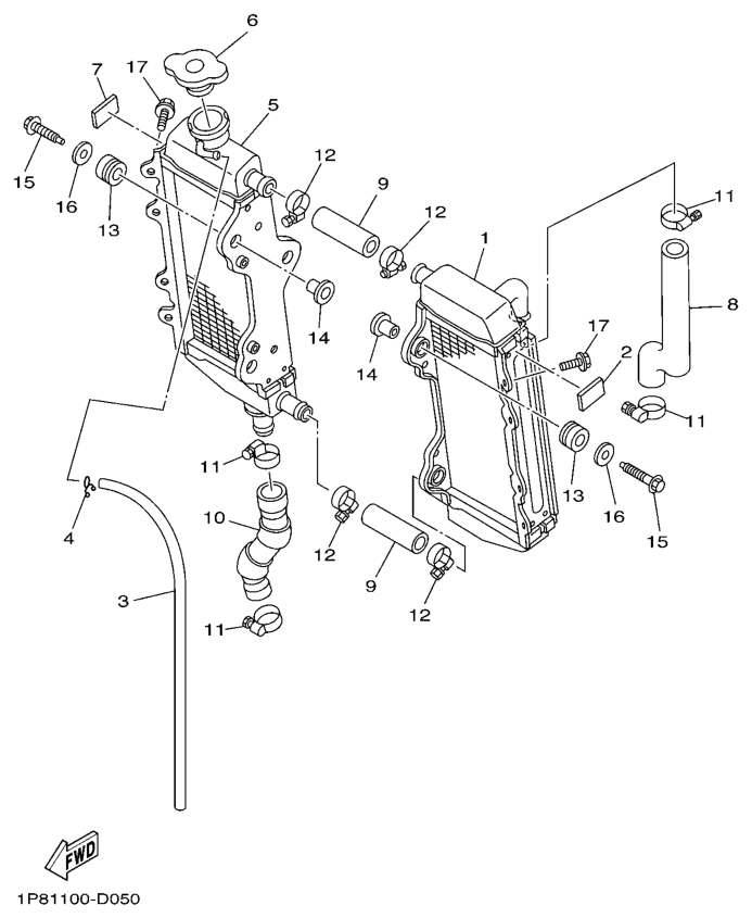 Jäähdytin ja letkut, YZ250 2011, YZ250, 250 cc Offroad, Yamaha -varaosa luettelot