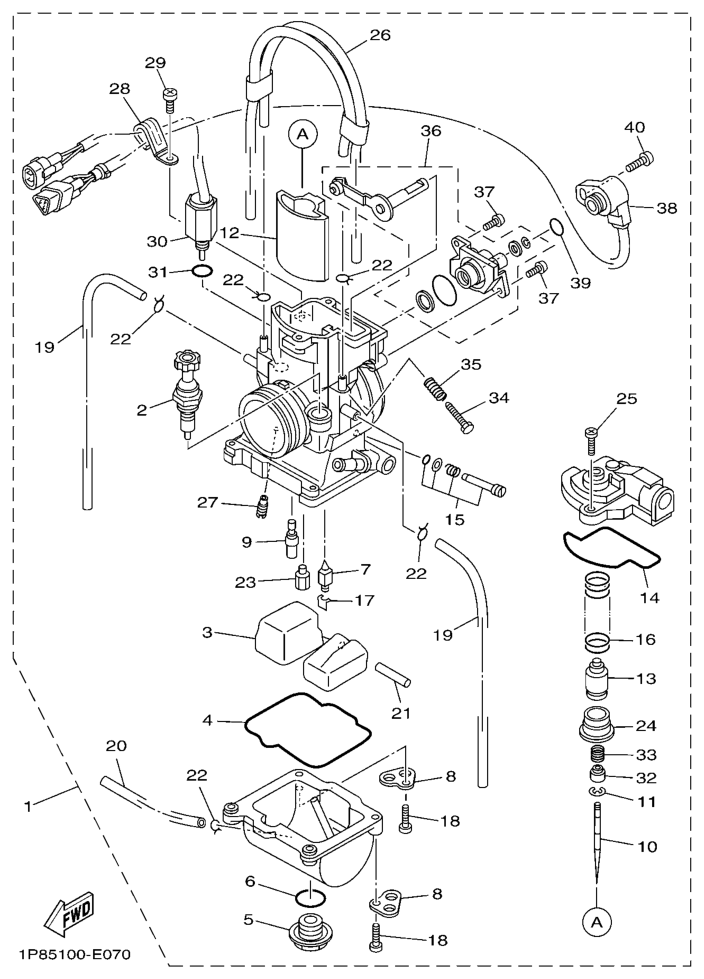 Carburetor, YZ250 2016, YZ250, 250 cc Offroad, Yamaha -varaosa luettelot