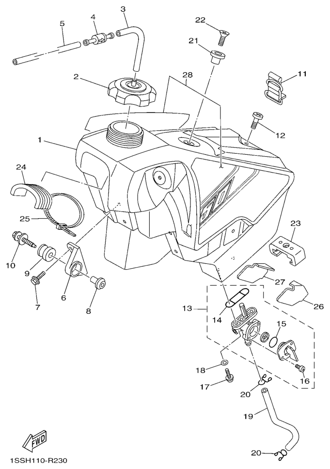 Fuel tank, YZ250 2016, YZ250, 250 cc Offroad, Yamaha -varaosa luettelot