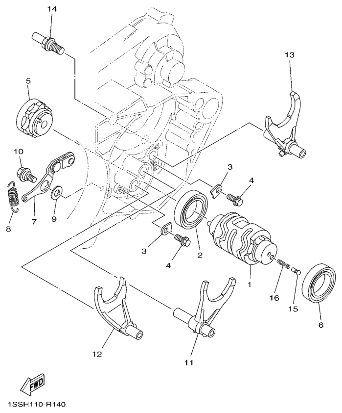 Vaihderumpu ja haarukat, YZ250 2018, YZ250, 250 cc Offroad, Yamaha -varaosa luettelot