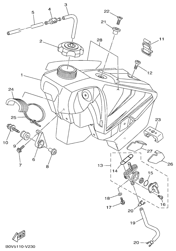 Fuel tank, YZ250 2020, YZ250, 250 cc Offroad, Yamaha -varaosa luettelot