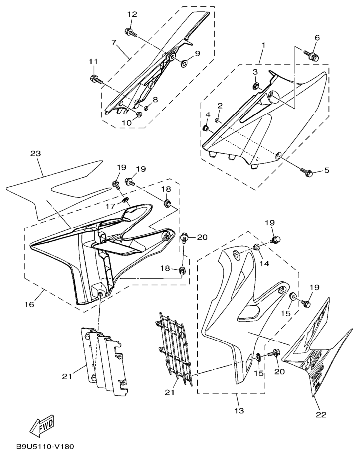 Side cover, YZ250 2020, YZ250, 250 cc Offroad, Yamaha -varaosa luettelot