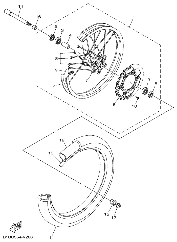 Etupyörä, YZ250 2021, YZ250, 250 cc Offroad, Yamaha -varaosa luettelot