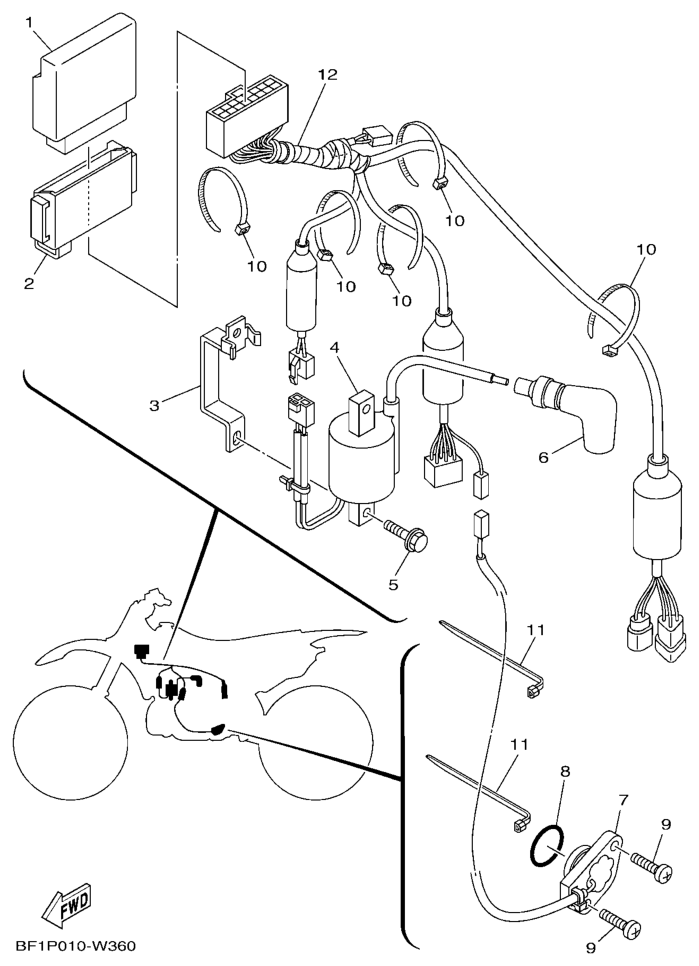 Sähköjestelmä 1, YZ250 2021, YZ250, 250 cc Offroad, Yamaha -varaosa luettelot