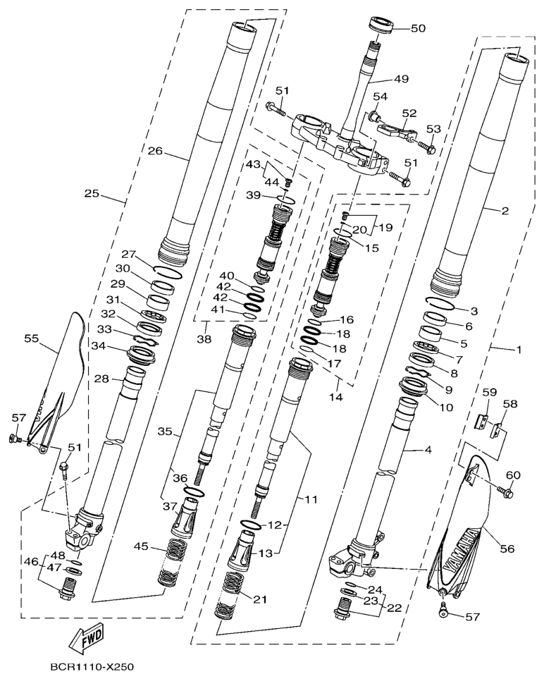 Etuhaarukka, YZ250 2022, YZ250, 250 cc Offroad, Yamaha -varaosa luettelot
