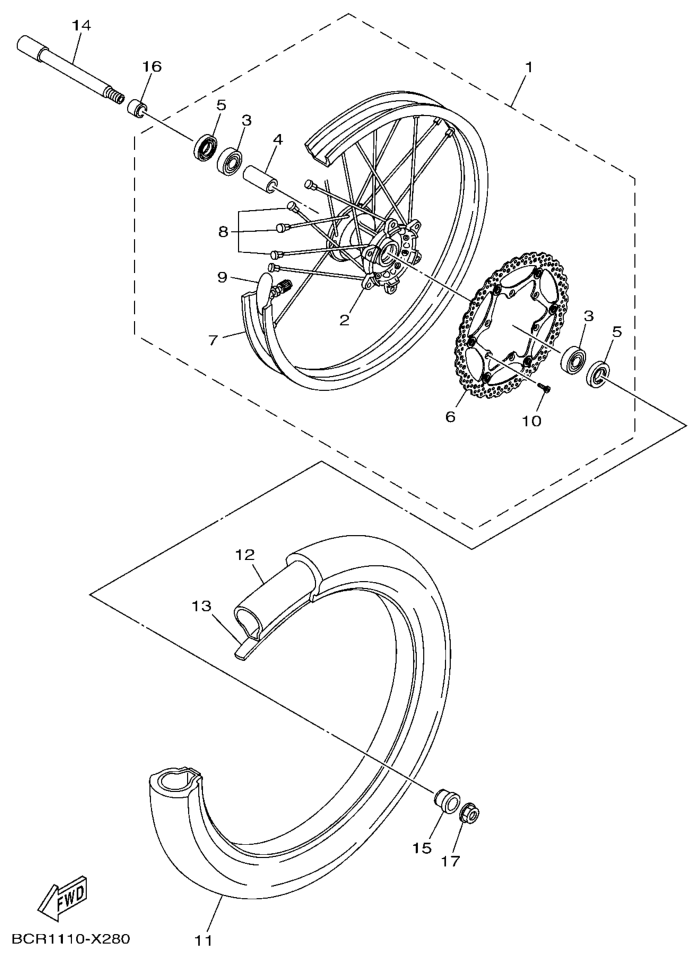 Etupyörä, YZ250 2022, YZ250, 250 cc Offroad, Yamaha -varaosa luettelot