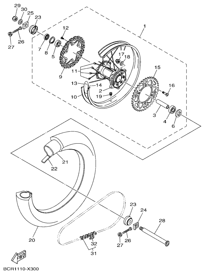 Takapyörä, YZ250 2023, YZ250, 250 cc Offroad, Yamaha -varaosa luettelot