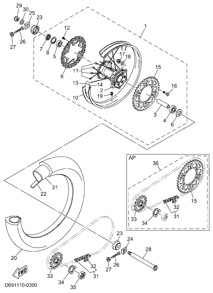 Takapyörä, YZ250 2025, YZ250, 250 cc Offroad, Yamaha -varaosa luettelot