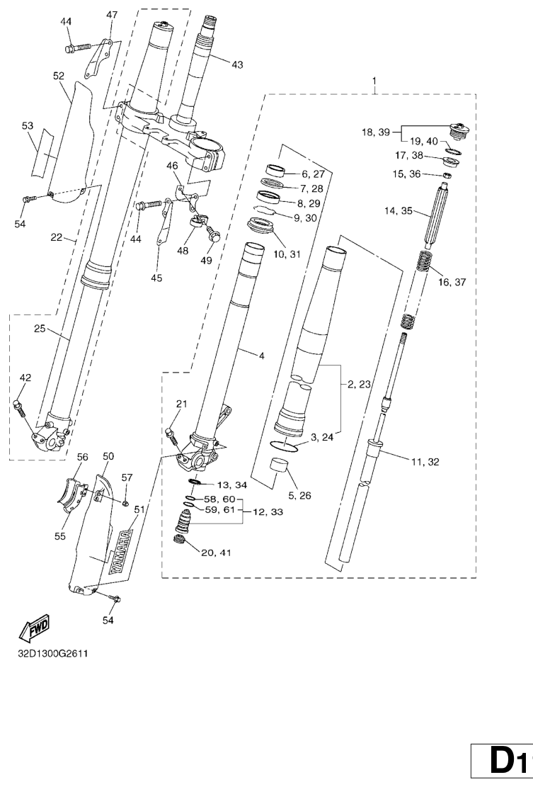 Etuhaarukka, WR250R 2008, WR250R, 250 cc, Yamaha -varaosa luettelot