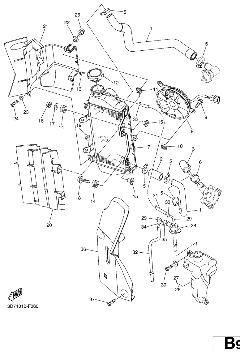 Jäähdytin ja letkut, WR250R 2008, WR250R, 250 cc, Yamaha -varaosa luettelot