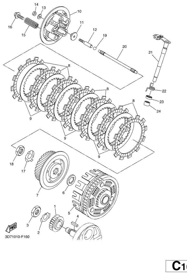 Kytkin, WR250R 2008, WR250R, 250 cc, Yamaha -varaosa luettelot