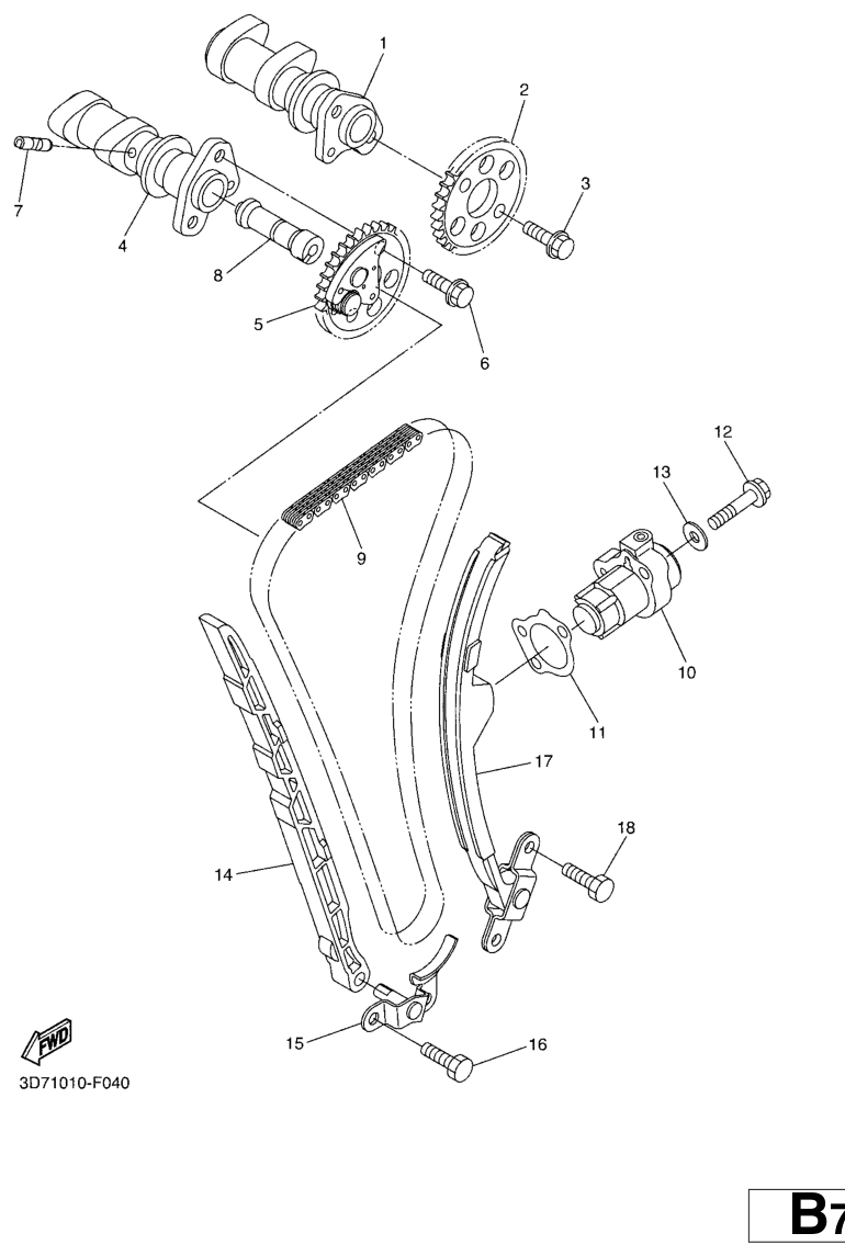 Nokka-akseli ja ketju, WR250R 2008, WR250R, 250 cc, Yamaha -varaosa luettelot