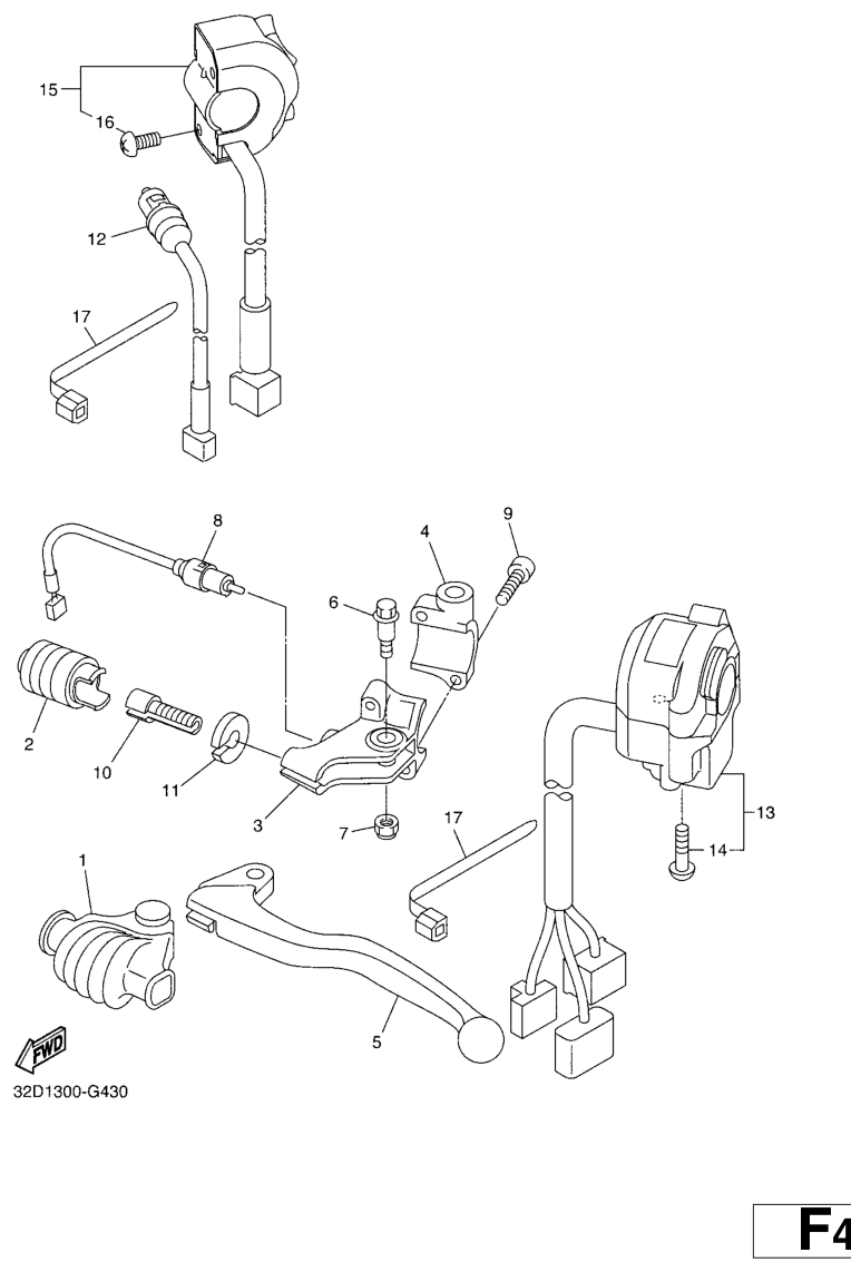 Ohjaustangon katkaisija ja vivut, WR250R 2008, WR250R, 250 cc, Yamaha -varaosa luettelot