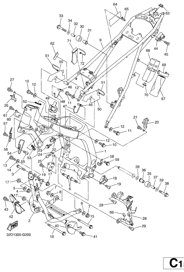 Runko, WR250R 2008, WR250R, 250 cc, Yamaha -varaosa luettelot