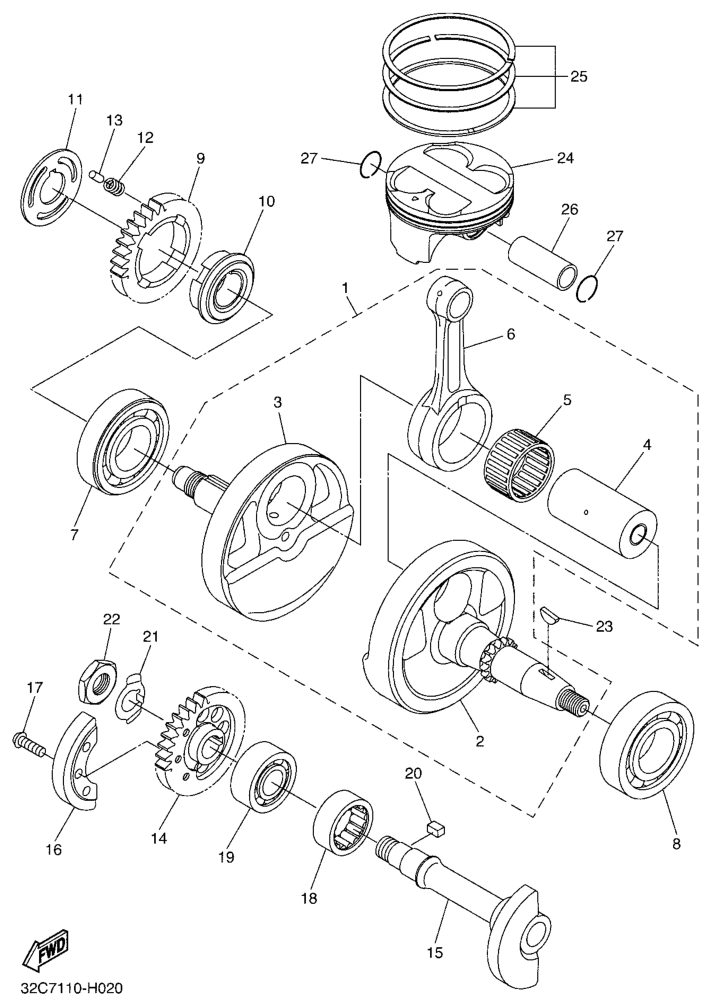 Kampiakseli ja mäntä, WR250R 2010, WR250R, 250 cc, Yamaha -varaosa luettelot