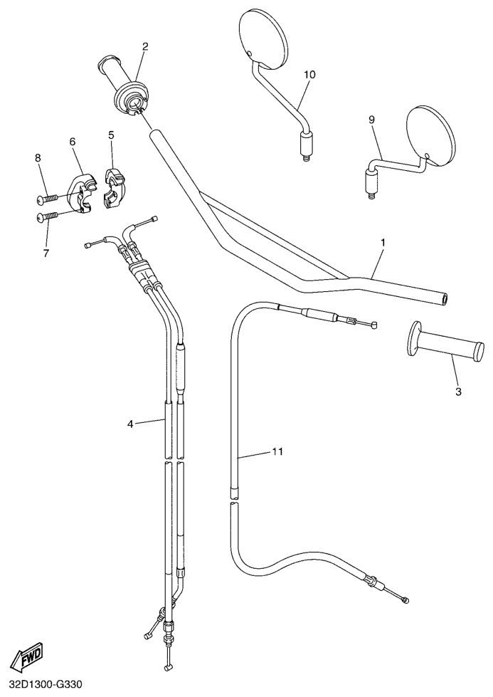 Ohjaustanko ja vaijerit, WR250R 2011, WR250R, 250 cc, Yamaha -varaosa luettelot