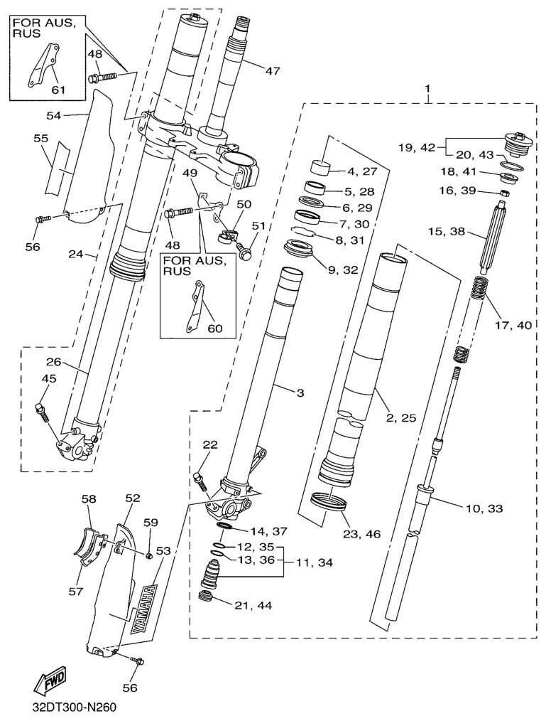 Etuhaarukka, WR250R 2015, WR250R, 250 cc, Yamaha -varaosa luettelot
