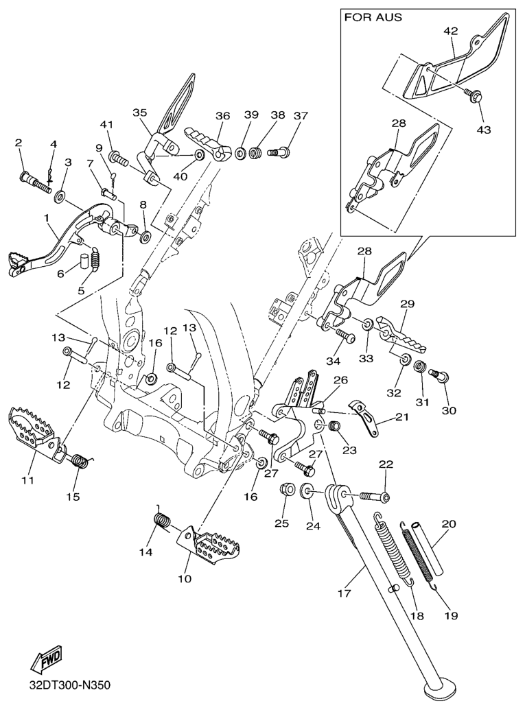 Seisontatuki ja jalkatapit, WR250R 2015, WR250R, 250 cc, Yamaha -varaosa luettelot