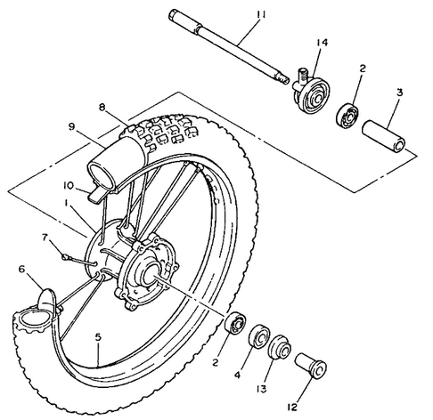 26-Etupyörä, TT-350 1990, 350 cc, Yamaha -varaosa luettelot