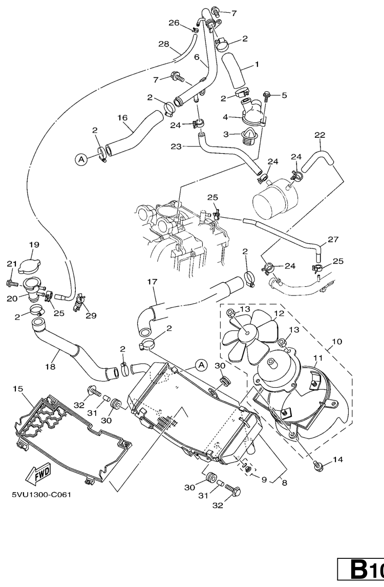 Jäähdytin ja letkut, XP500 TMAX 2006, XP500-TMAX, 500 cc, Yamaha -varaosa luettelot