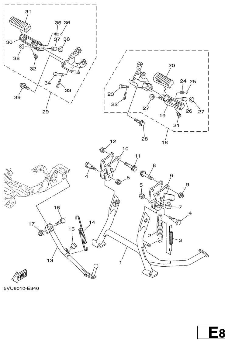 Seisontatuki ja jalkatapit, XP500 TMAX 2006, XP500-TMAX, 500 cc, Yamaha -varaosa luettelot
