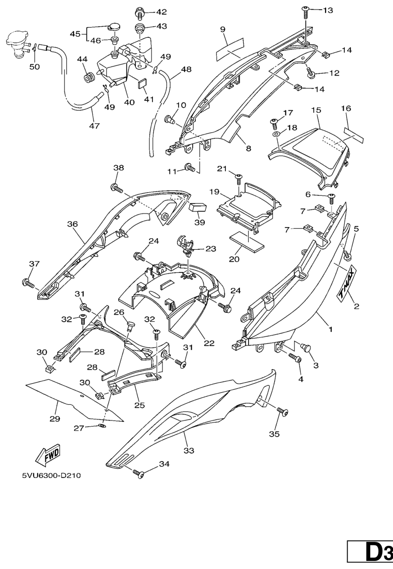 Side cover, XP500 TMAX 2006, XP500-TMAX, 500 cc, Yamaha -varaosa luettelot
