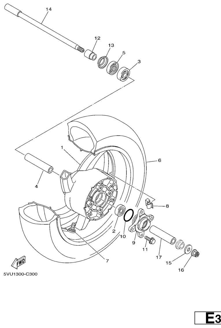 Takapyörä, XP500 TMAX 2006, XP500-TMAX, 500 cc, Yamaha -varaosa luettelot