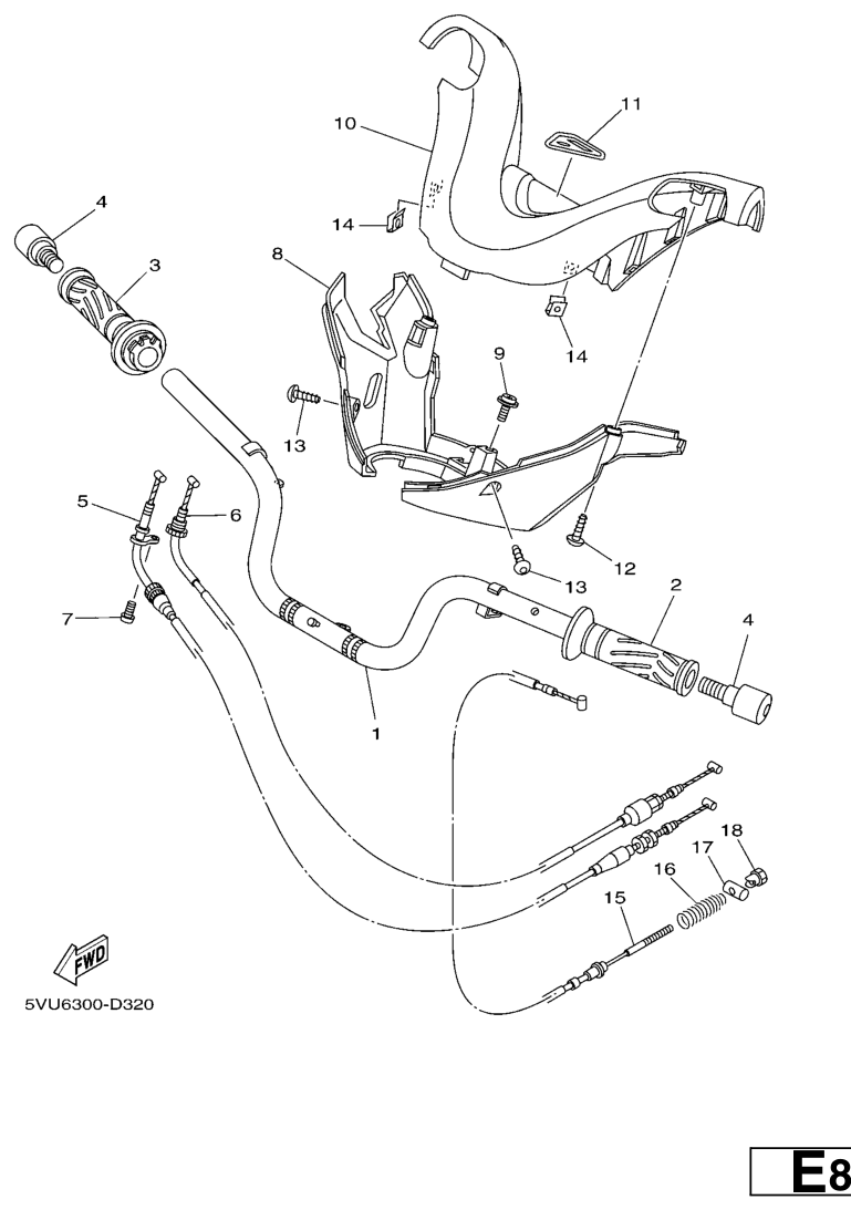 Ohjaustanko ja vaijerit, XP500 TMAX 2007, XP500-TMAX, 500 cc, Yamaha -varaosa luettelot