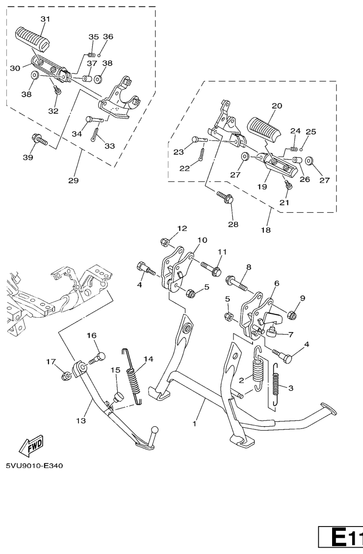 Seisontatuki ja jalkatapit, XP500 TMAX 2007, XP500-TMAX, 500 cc, Yamaha -varaosa luettelot