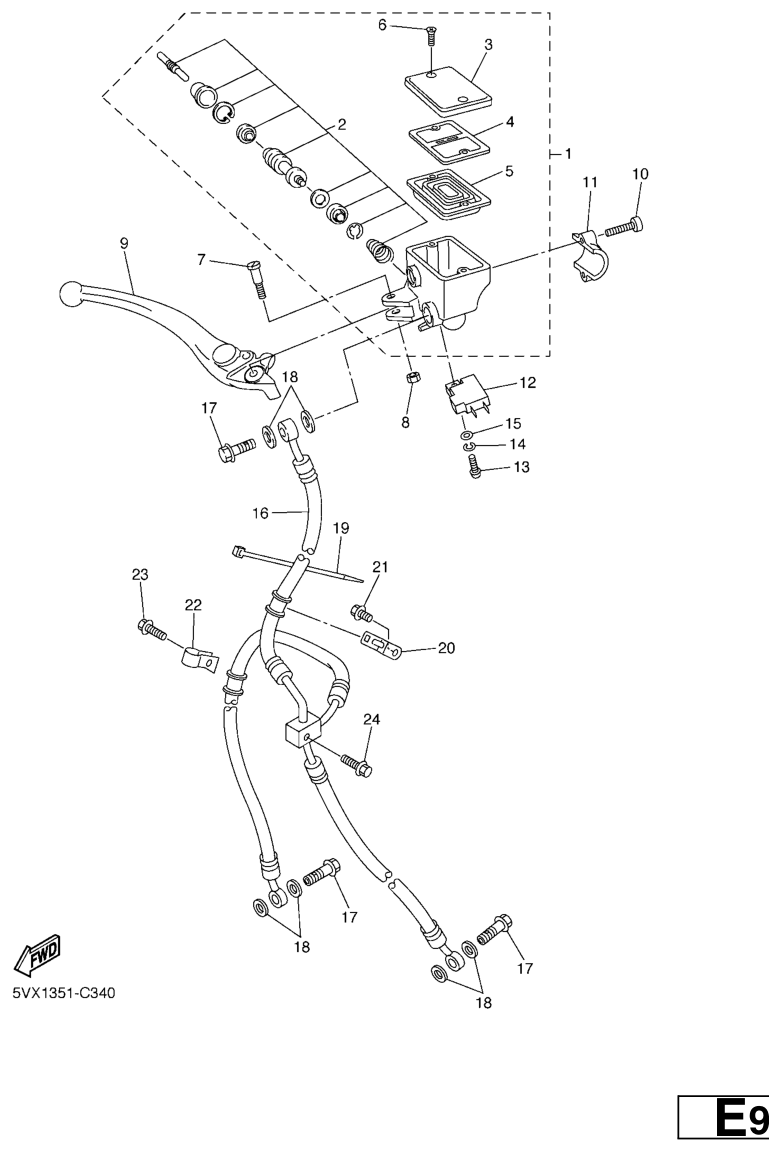 Etujarrun pääsylinteri, FZ6-S 2004, FZ6-S, 600 cc, Yamaha -varaosa luettelot