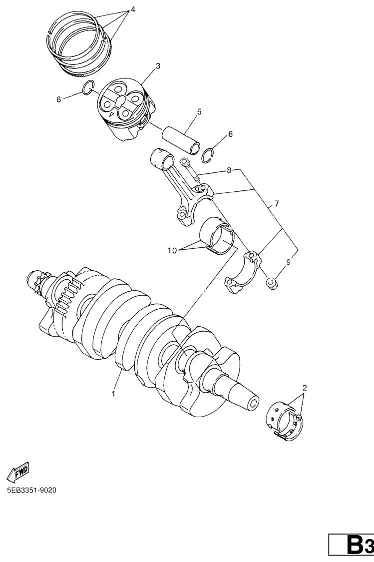 Kampiakseli ja mäntä, FZ6-S 2004, FZ6-S, 600 cc, Yamaha -varaosa luettelot