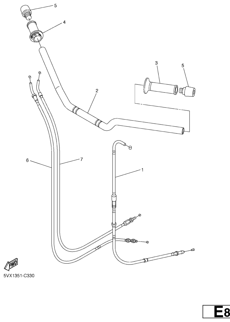 Ohjaustanko ja vaijerit, FZ6-S 2004, FZ6-S, 600 cc, Yamaha -varaosa luettelot