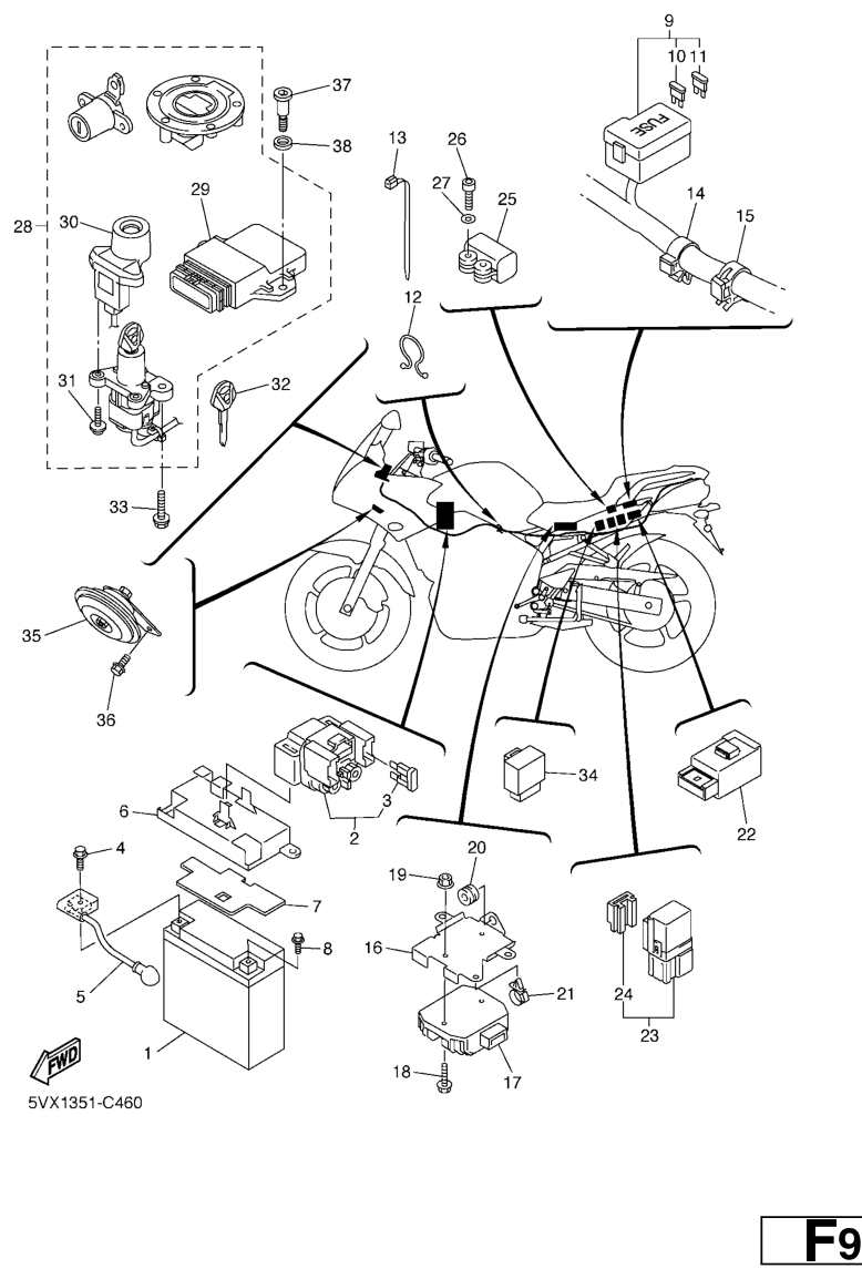 Sähköjestelmä 2, FZ6-S 2004, FZ6-S, 600 cc, Yamaha -varaosa luettelot