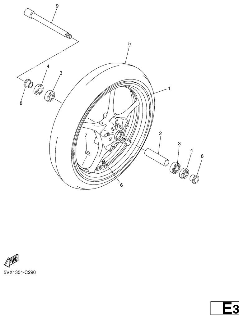 Etupyörä, FZ6-S 2006, FZ6-S, 600 cc, Yamaha -varaosa luettelot