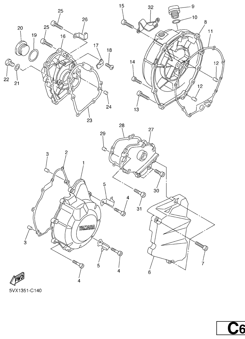 Moottorin kopat, FZ6-S 2006, FZ6-S, 600 cc, Yamaha -varaosa luettelot