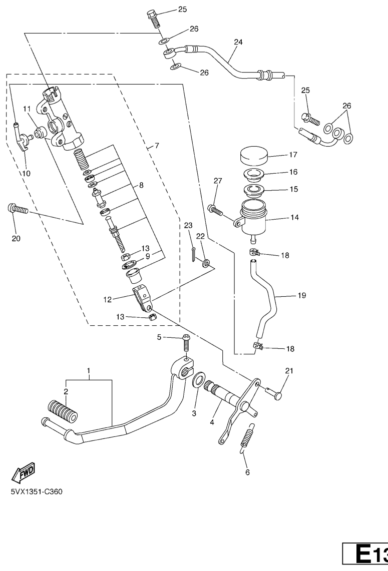 Takajarrun pääsylinteri, FZ6-S 2006, FZ6-S, 600 cc, Yamaha -varaosa luettelot
