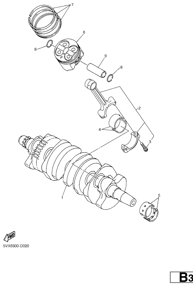 Kampiakseli ja mäntä, FZ6-S2 2007, FZ6-S, 600 cc, Yamaha -varaosa luettelot