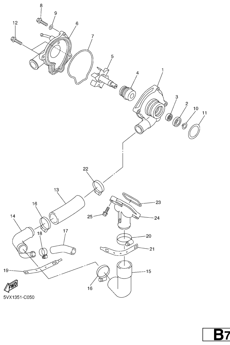 Vesipumppu, FZ6-S2 2007, FZ6-S, 600 cc, Yamaha -varaosa luettelot