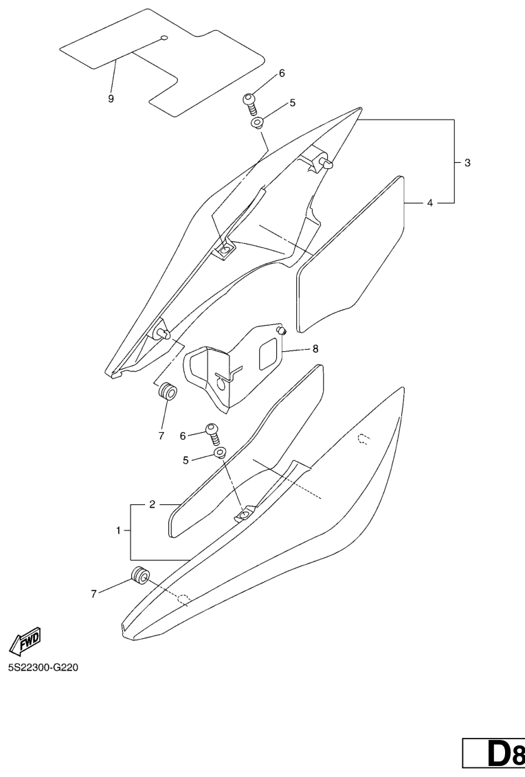Side cover, FZ6-S2 2008, FZ6-S, 600 cc, Yamaha -varaosa luettelot