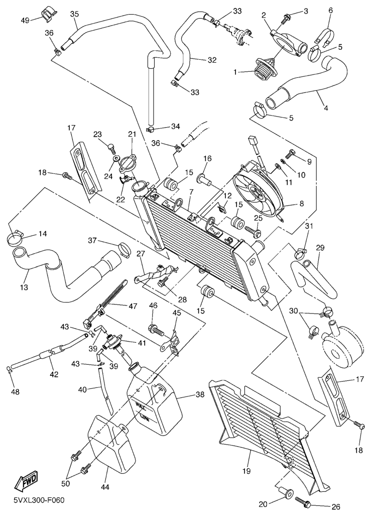 Jäähdytin ja letkut, FZ6-S2 2009, FZ6-S, 600 cc, Yamaha -varaosa luettelot