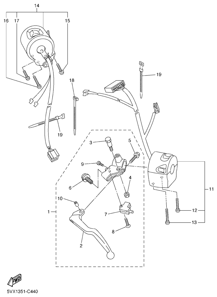 Ohjaustangon katkaisija ja vivut, FZ6-S2 2009, FZ6-S, 600 cc, Yamaha -varaosa luettelot