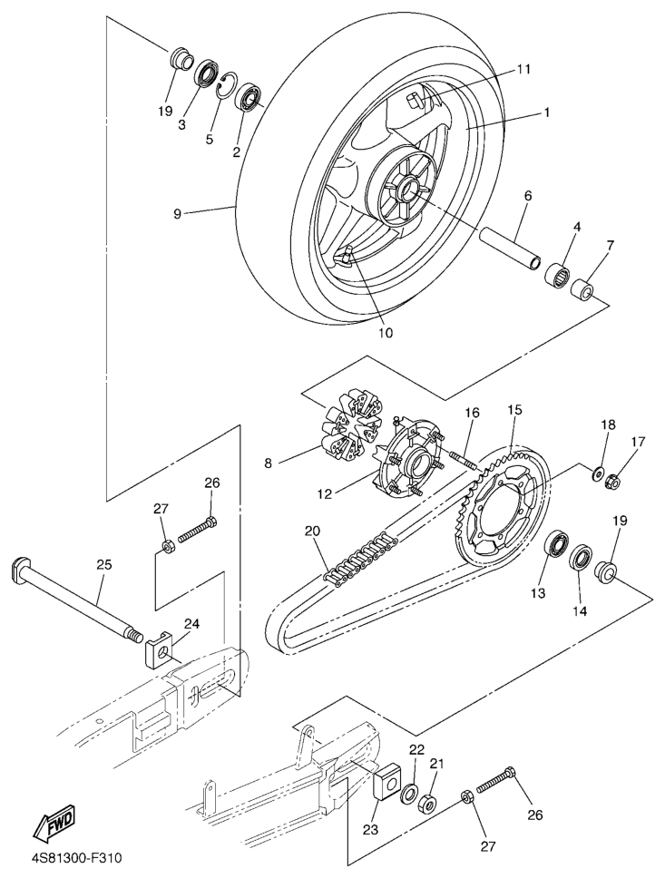 Takapyörä, FZ6-S2 2009, FZ6-S, 600 cc, Yamaha -varaosa luettelot