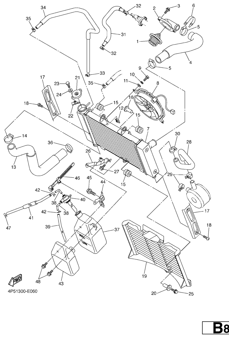 Jäähdytin ja letkut, FZ6-SA 2006, FZ6-S, 600 cc, Yamaha -varaosa luettelot