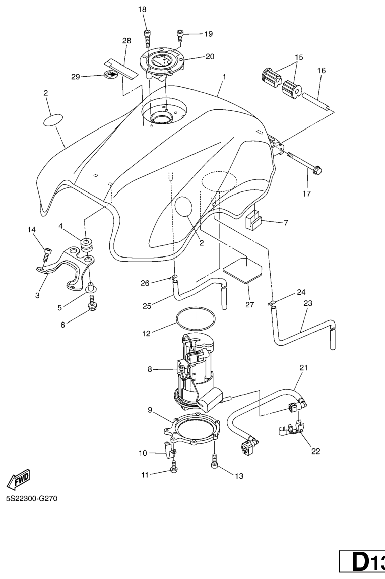 Fuel tank, FZ6-SA2 2008, FZ6-S, 600 cc, Yamaha -varaosa luettelot