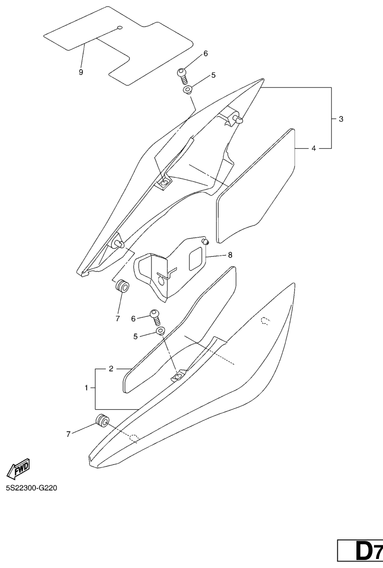 Side cover, FZ6-SA2 2008, FZ6-S, 600 cc, Yamaha -varaosa luettelot