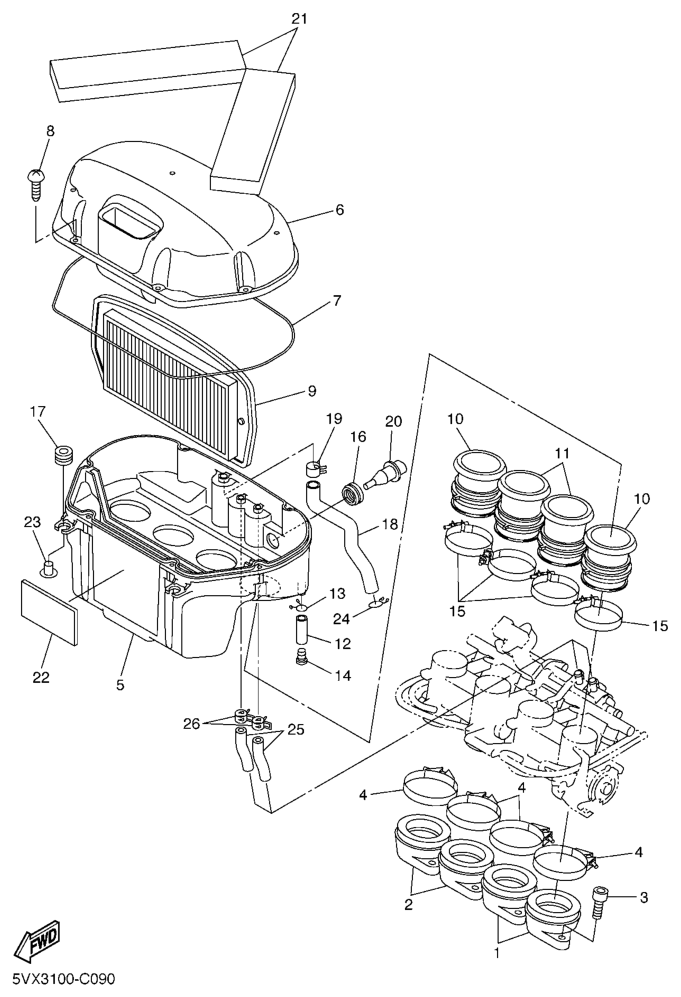Ilmanotto, FZ6-SA2 2009, FZ6-S, 600 cc, Yamaha -varaosa luettelot