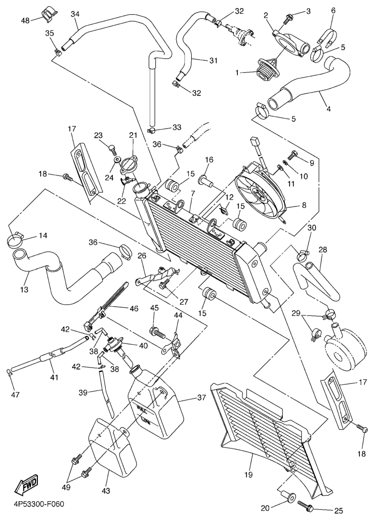 Jäähdytin ja letkut, FZ6-SA2 2009, FZ6-S, 600 cc, Yamaha -varaosa luettelot