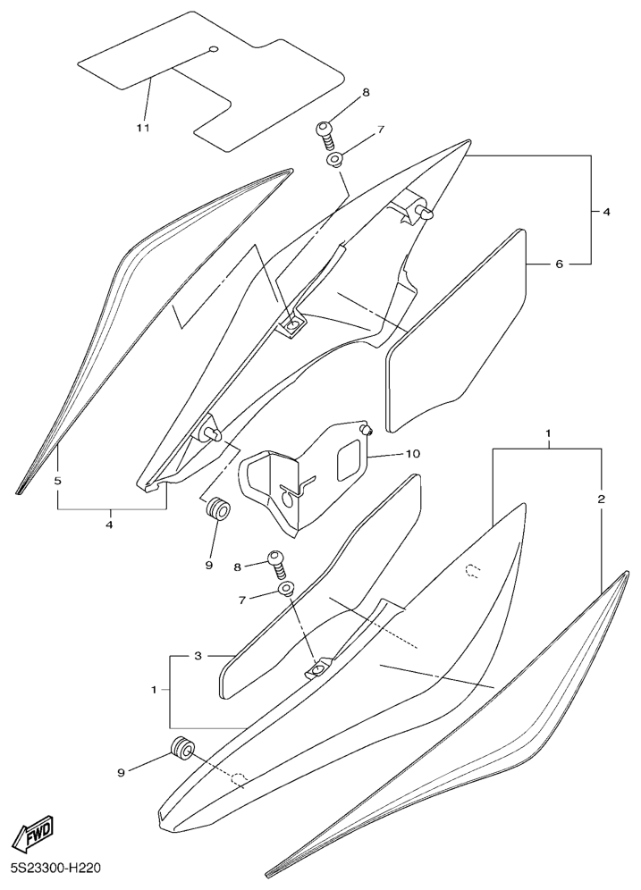 Side cover, FZ6-SA2 2009, FZ6-S, 600 cc, Yamaha -varaosa luettelot